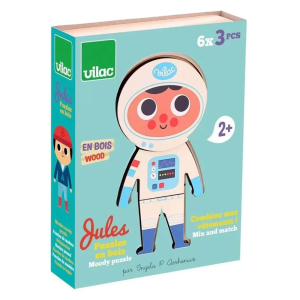 Questo cofanetto fa parte della collezione dei puzzle in legno di Vilac, presentati in una carinissima scatola intagliata, dove si può comporre la figura direttamente sul coperchio. Ti divertirai a posizionare nel posto corretto le 3 parti del corpo e creare per Jules i travestimenti più divertenti! Questi puzzle rappresentano un'ottima occasione per stimolare le capacità motorie, l’osservazione e la creatività del tuo piccolo. Quindi che aspetti? Crea gli abbinamenti più buffi e colorati!