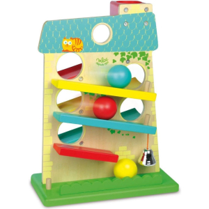 Un gioco classico per i 12 mesi, la cascata di palline rappresenta un ottimo intrattenimento, sicuro e ad effetto per tutti i piccolini. Inserisci le palline nel camino della casetta e osservale cadere scivolo dopo scivolo, una dopo l'altra! Alla fine il simpatico suono della campanella decreterà la fine della corsa: siamo pronti per ricominciare! Questo gioco è creato in legno con alti standar di qualità e sicurezza, garantiti dal famoso brand francese Vilac.