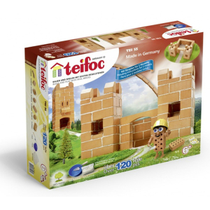 Teifoc permette di costruire un castello in miniatura! I mattoncini sono di argilla come i mattoni veri e propri; il cemento è fatto di mais e sabbia: è sicuro e super realistico; infine nella confezione troverete una ciotola per il cemento e una piccola cazzuola. Il cemento inoltre è solubile in acqua calda: in questo modo si può disfare la costruzione quando si vuole e ricrearla da capo, seguendo l'immagine o usando la fantasia!